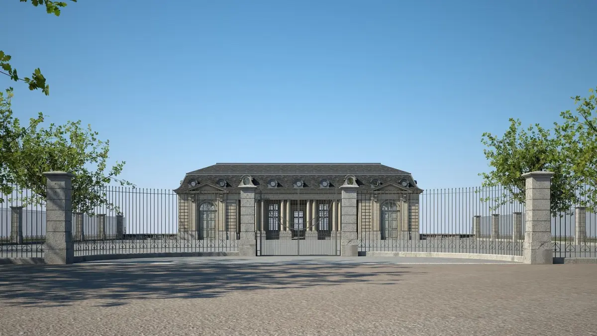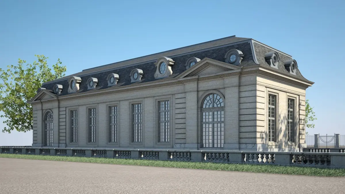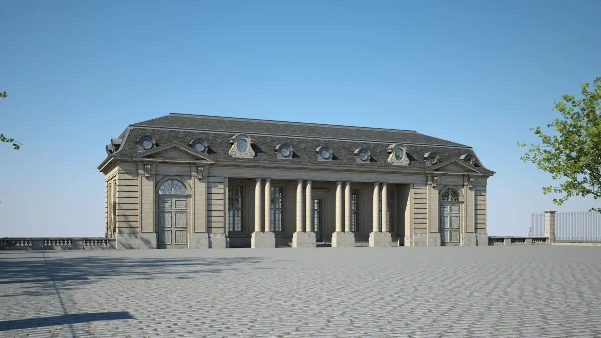 Detailed 3D model of a classical style building.