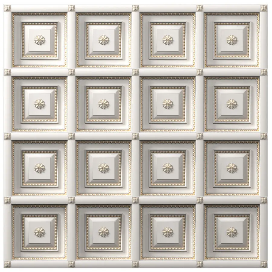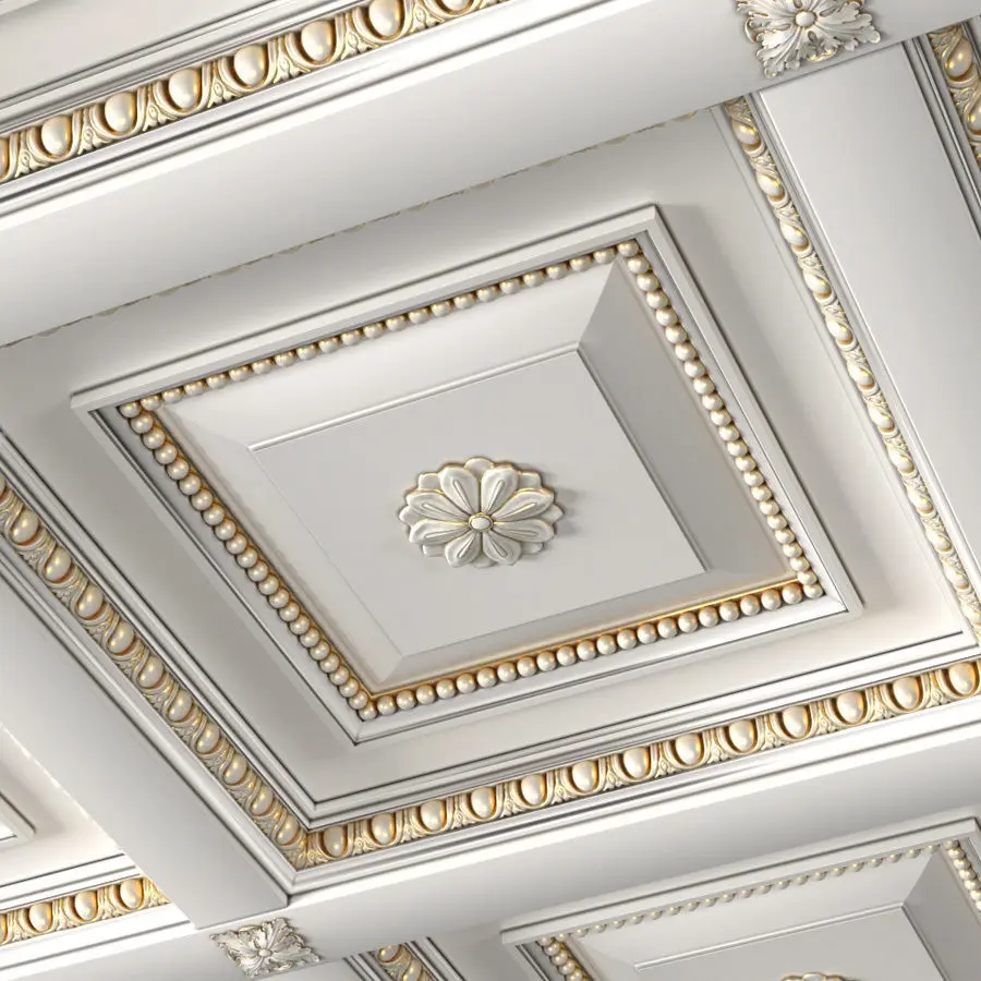 Classic coffered ceiling in white with gold patina.Decorative Ceiling coffers TileCeiling setCoffers Ceiling
