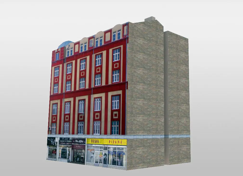 An old corner building in Belgrade, Serbia, built between the world wars. Low-poly and game ready.