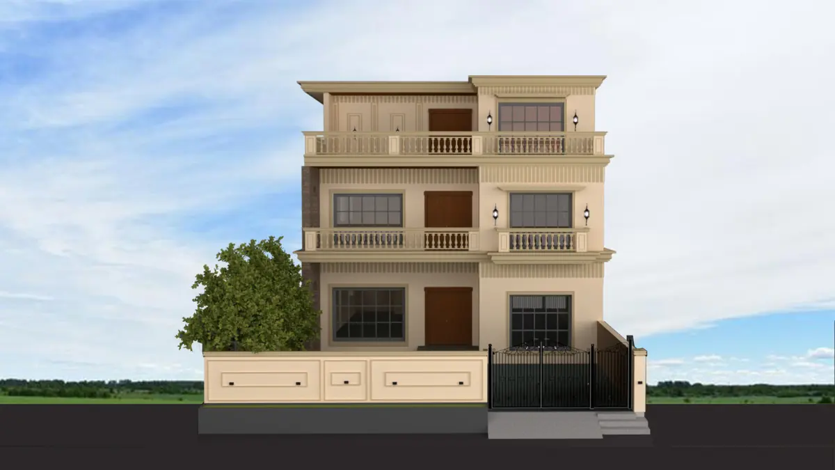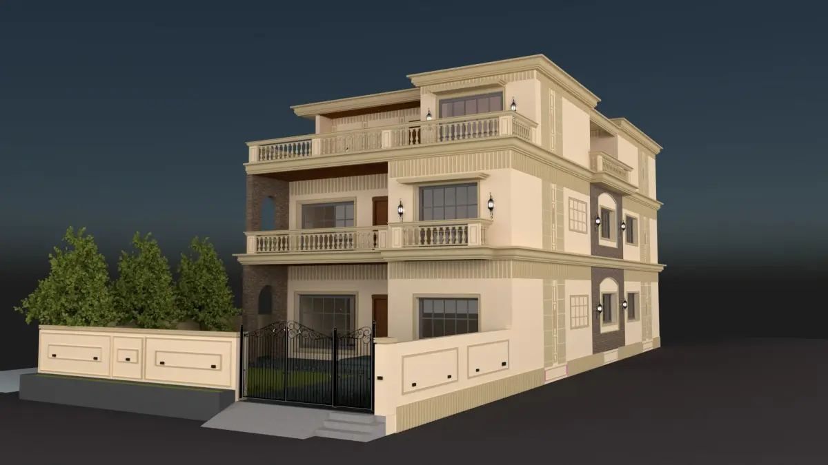 A DETAILED MODELLED CLASSICAL ELEVATION WITH MATERIAL WRAPPING AND LIGHTING.