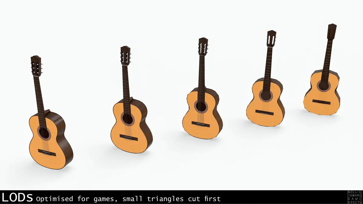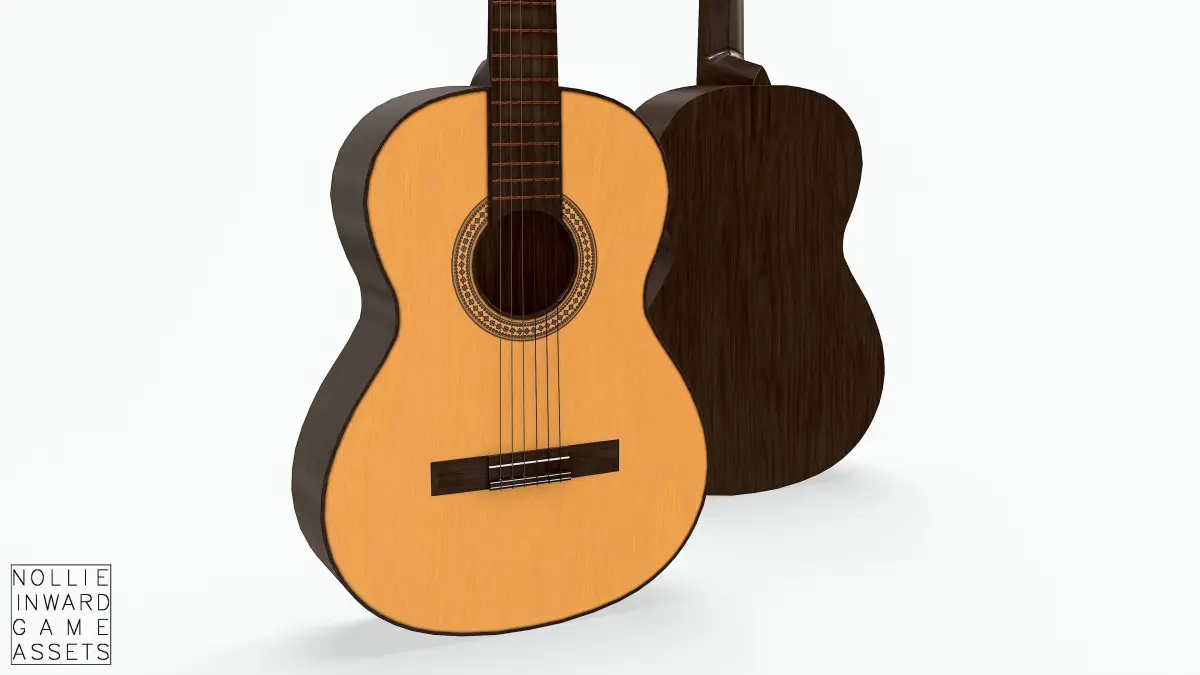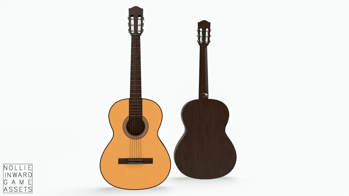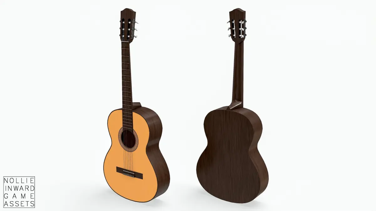 Classical Guitar Used and Dirty, textured carefully with Substance Painer. Real life dimensions. Strings are single objects parented to the guitar.