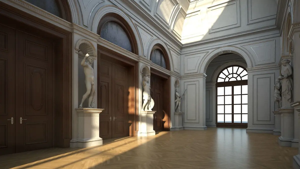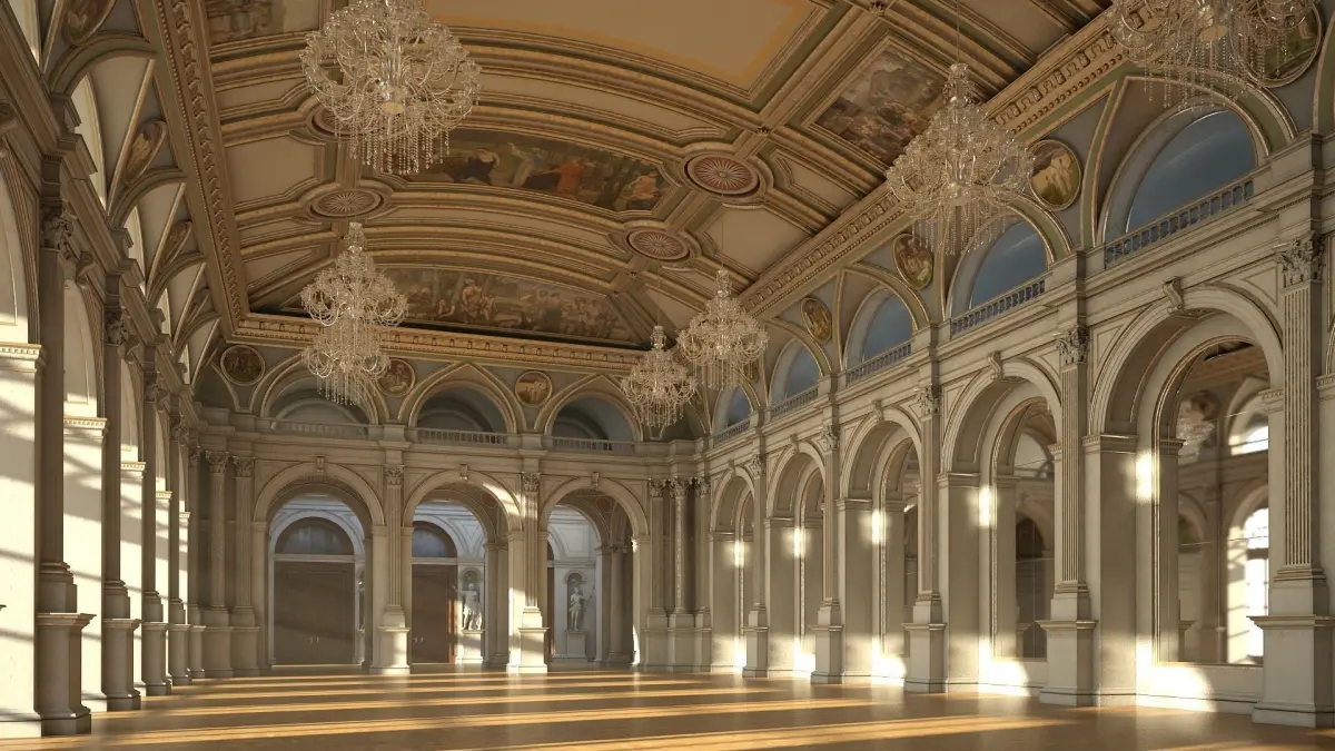 Detailed 3D model of a classical style interior. Suitable for high resolution close-ups. Real world scale.