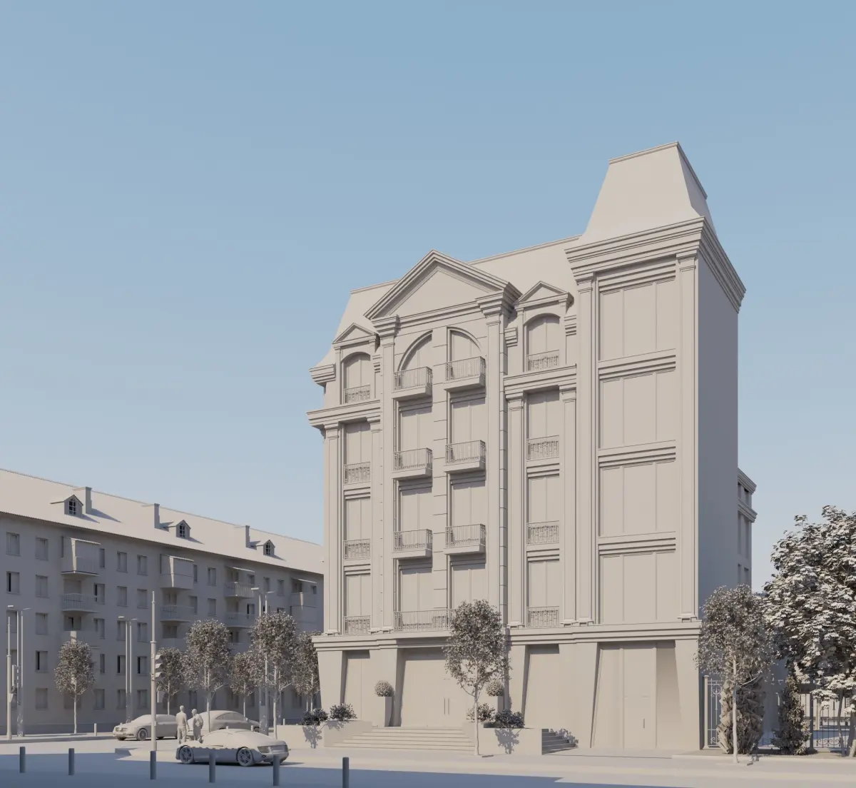 This is a high quality detailed photo - realistic model of a classical hotel building