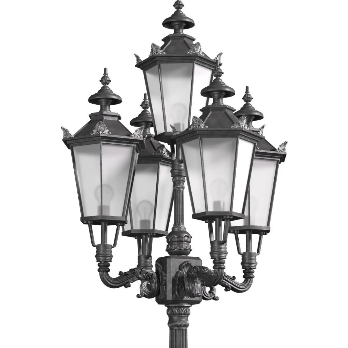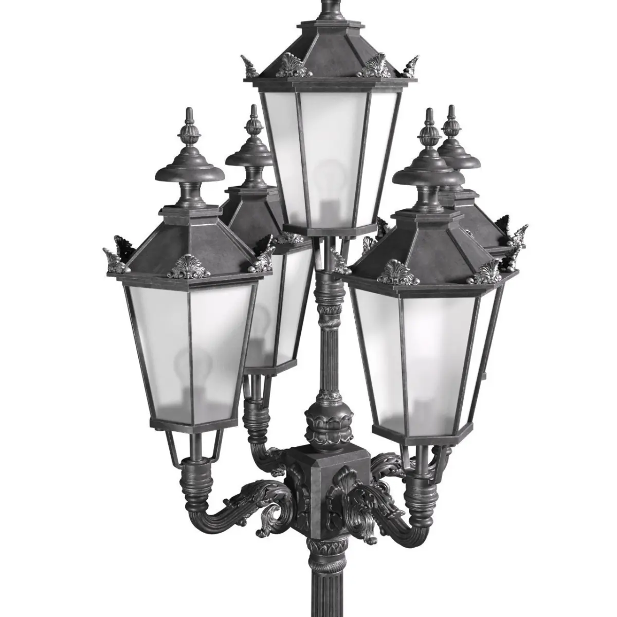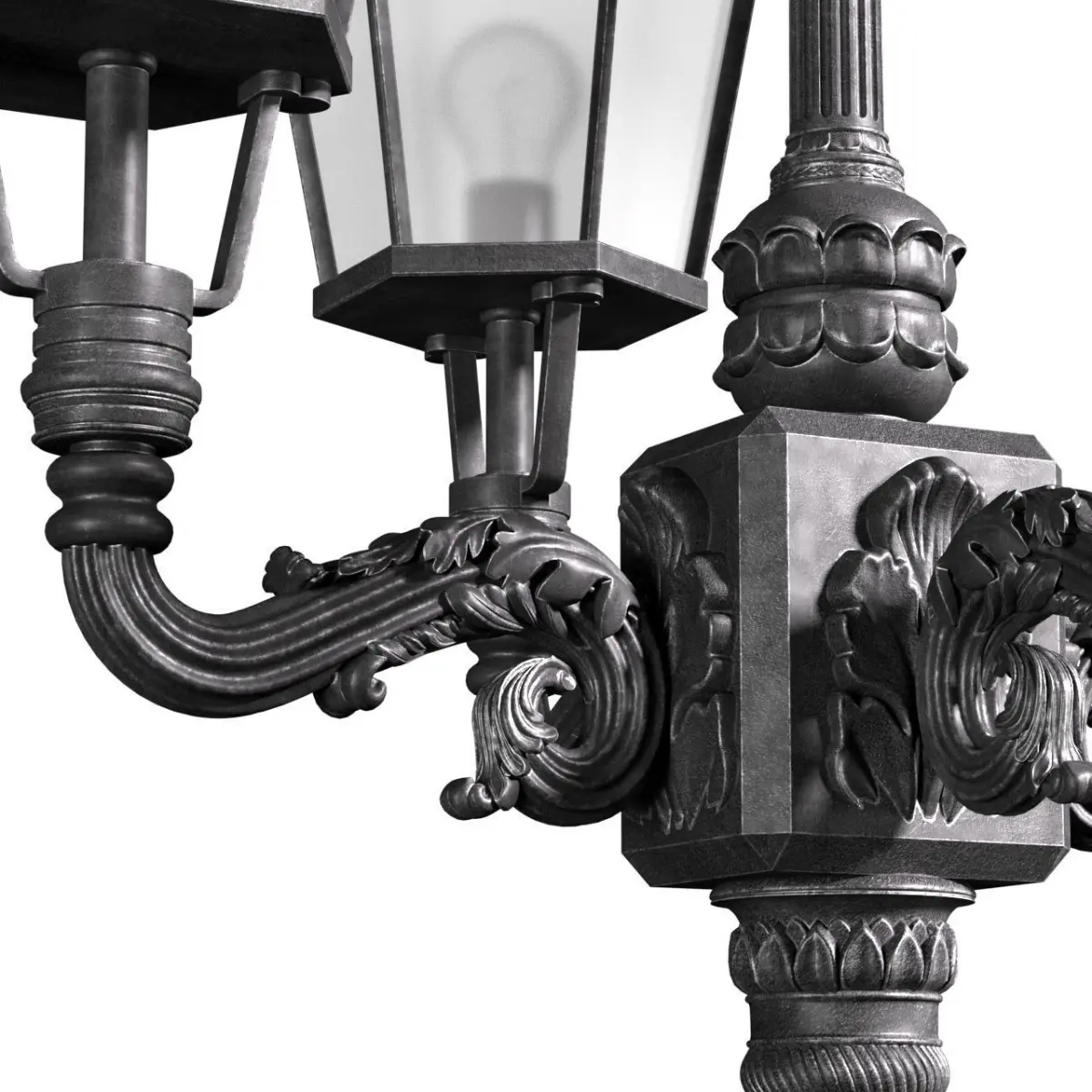 Forged street lamp in a classic style made by Schlesische Laternenwww.terralumi.comMulti-lamp floor lamp Schinkel Rodos 2P Arm 71: This floor lamp for garden or path lighting is available with two lamps and, on request, with three or four lamps. It is reliable and built using historical parts with excellent value for money.Large street lamp with lamp Schinkel Standleuchte Rodos 2P Arm 71von Schlesische Laternen for garden, park or path lighting is available in two sizes. They are made from durable, corrosion-resistant die-cast aluminum and finished with a durable powder coating of your choice.