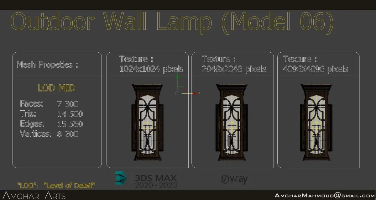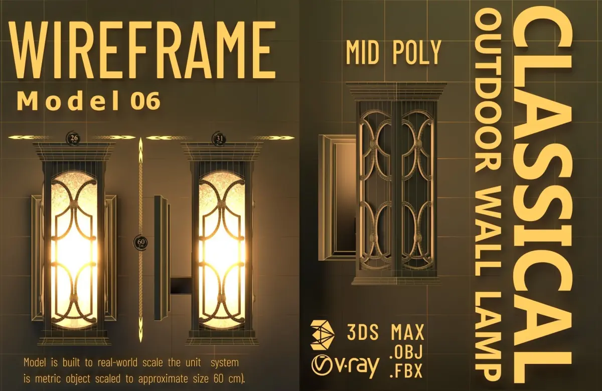 Transform Your Outdoor Space into a Haven of Beauty and Serenity with Our Classic 3D Wall-Mounted Outdoor Lamps. Crafted with meticulous attention to detail and a focus on aesthetics. Each model is a masterpiece of 3D modeling, created with great attention to detail to capture the essence of the classic style.