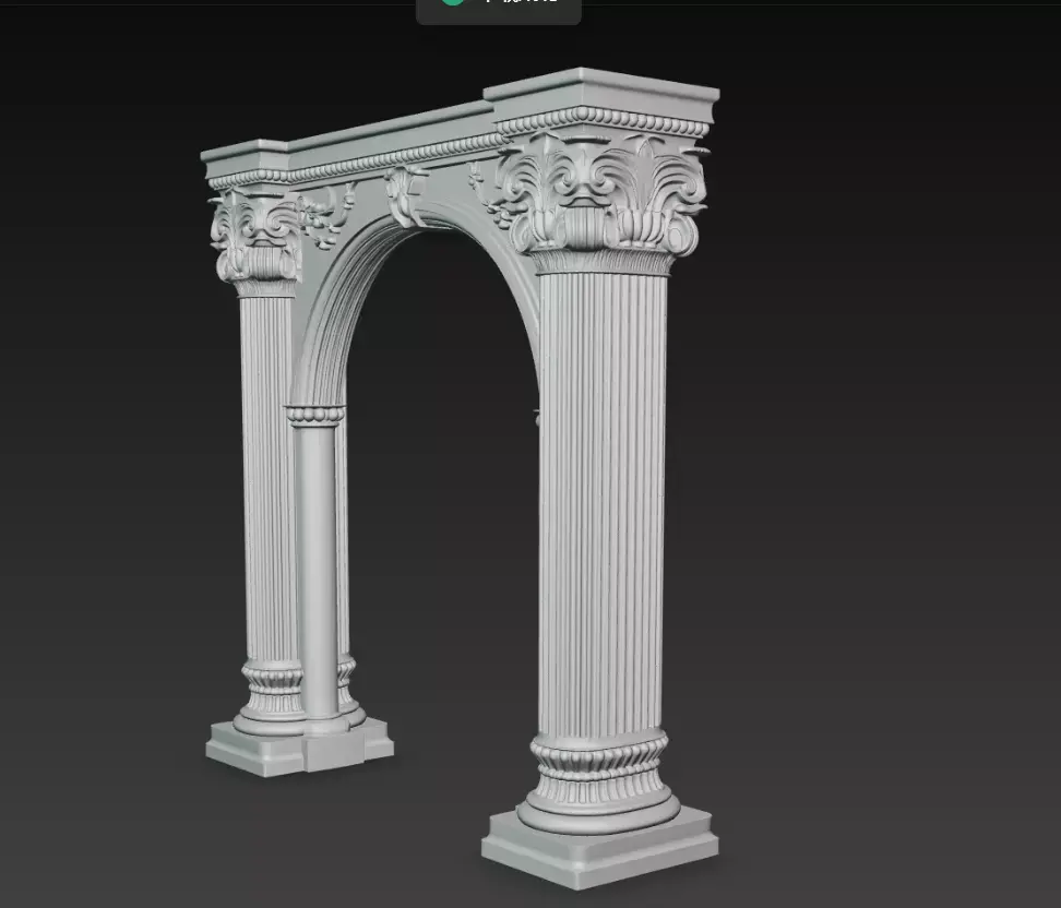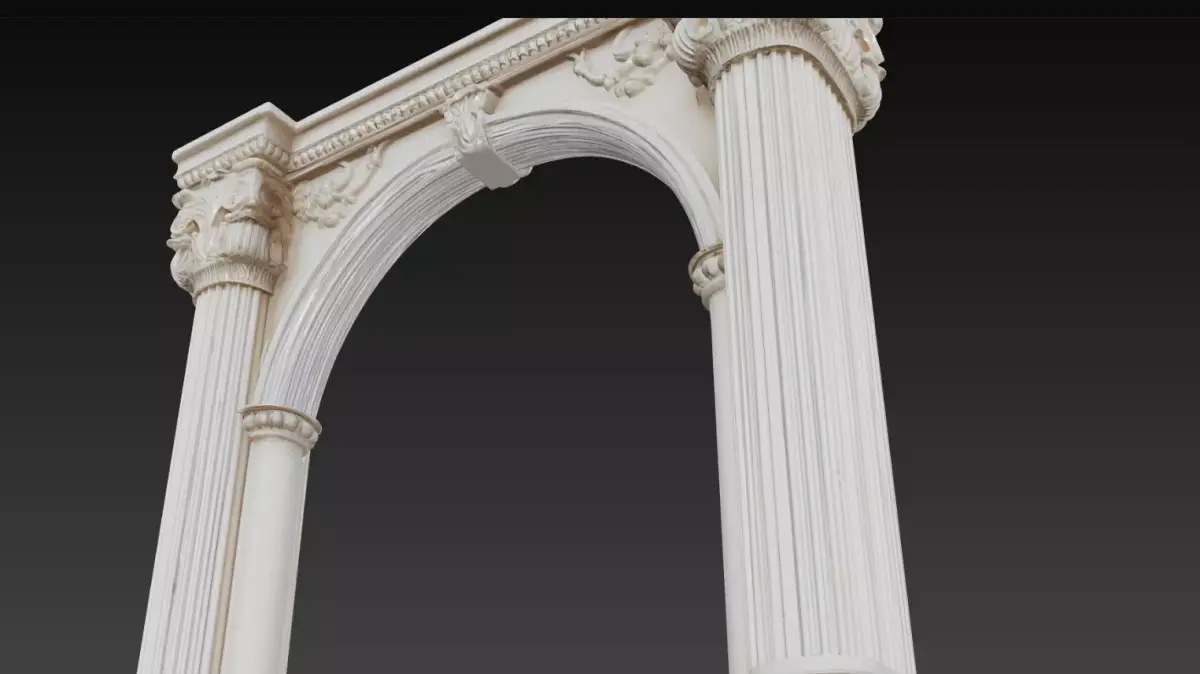 This Classical Roman Arch Columns 3D Model represents a beautifully crafted architectural structure inspired by traditional Roman and classical European architecture. The model features two tall fluted columns connected by a decorative arch, forming an elegant architectural gateway.