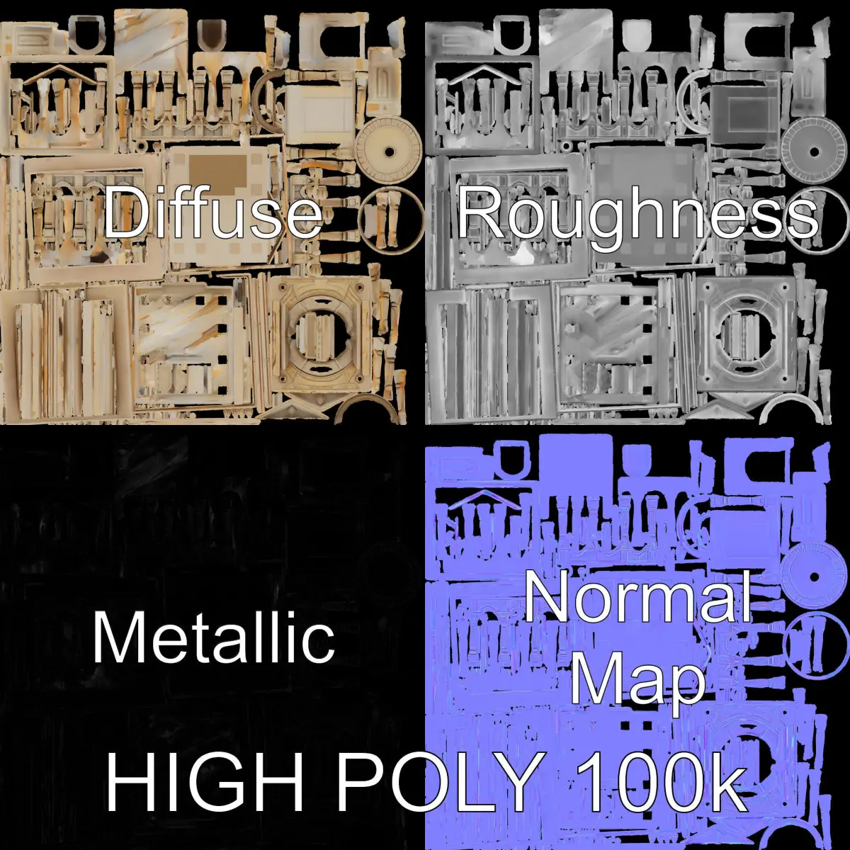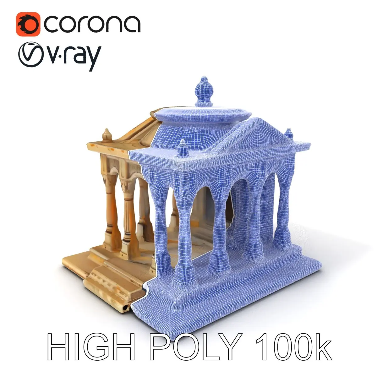 This Classical Temple Architecture Model Pack offers three levels of detail: low-poly for mobile (1000 triangles), middle-poly for environmental settings (10,000 triangles), and high-poly for production rendering (100,000 triangles). Perfect for use in 3ds Max, Maya, Cinema4D, Blender, Vray/Corona/Cycles, Unity, Unreal, and more. Ideal for architectural visualizations, historical reconstructions, and game environments. Features PBR textures with Diffuse, NormalMap, and reflection/roughness/metallic maps, all at 4096*4096 size. Models are accurately unwrapped with no overlapping UVs.
