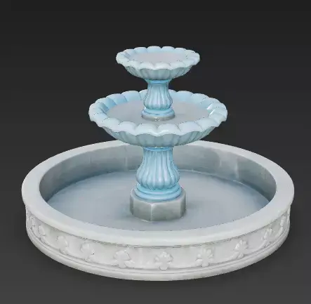The Overall Concept This asset is a decorative tiered water fountain, typically found in the center of a town square, a rich estate garden, or a public park. It acts as a beautiful centerpiece that adds a sense of calm and history to any environment.