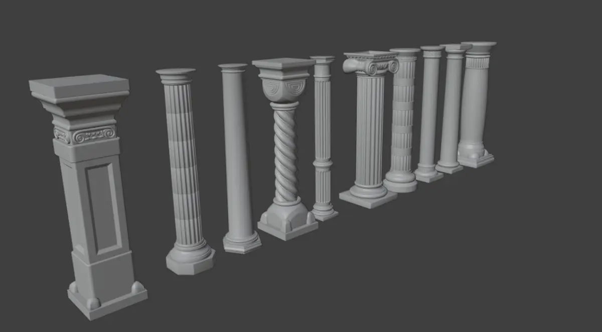 This collection offers a set of 10 meticulously - crafted classical column 3D models. Each column showcases unique architectural details, from ornate capitals to textured shafts. Ideal for architectural visualization, historical scene reconstruction, or 3D design projects aiming to infuse a touch of classic elegance. High - precision meshes ensure seamless integration into various 3D workflows. (该合集包含 10 个精心打造的古典立柱 3D 模型。每根立柱都有独特建筑细节,从华丽柱头到带纹理柱身。适用于建筑可视化、历史场景重建,或想融入经典优雅风格的 3D 设计项目。高精度网格确保顺畅融入各类 3D 制作流程 。 )