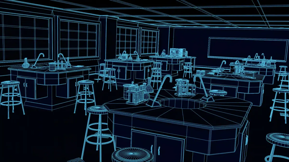 This 3D Computer Model is an Interior Design of a Chemistry Science Lab Classroom environment. This environment is fully textured and has assigned lighting. A lot of thought was put into this Computer 3D Model and created with very clean topology mesh and geometry in general. It is game, film or MetaVerse ready. Use for any of your convenience.