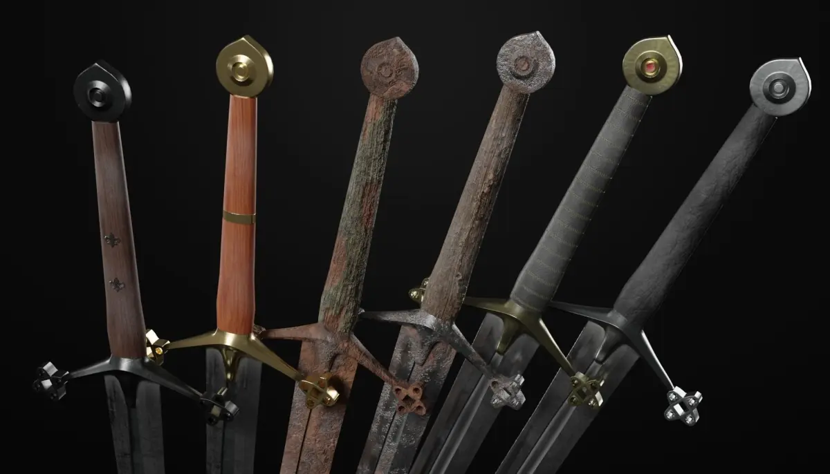 -There are 11 variants of textures (Basic black, Black noble, Golden, With fleur on handle, Rusty, Old, Basic black bloody, Black noble bloody, Golden bloody, With fleur on handle bloody and Rusty bloody )