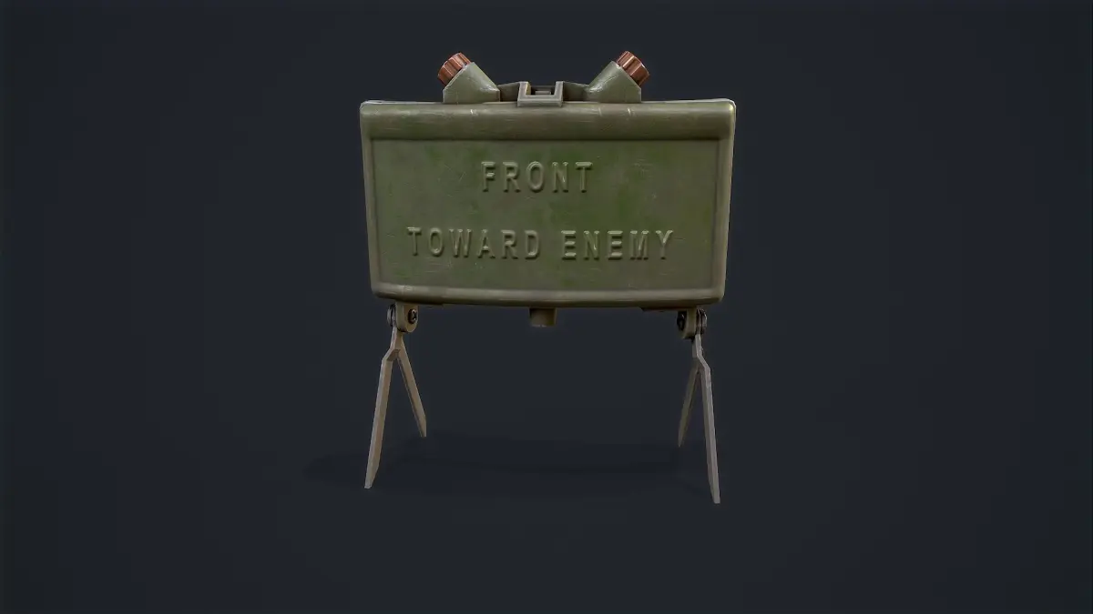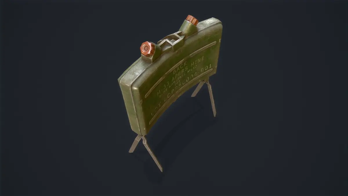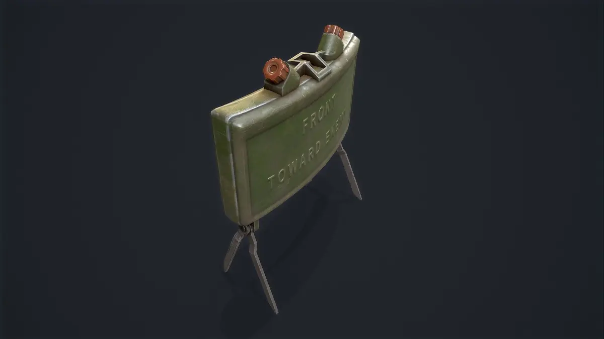 3d model Claymore Mine (PBR). This model is suitable for use in game, film, advertising, design visualization, etc. Include hi quality texture resolution is 2048x2048 Albedo,Normal,Metallic,Roughness,AO.
