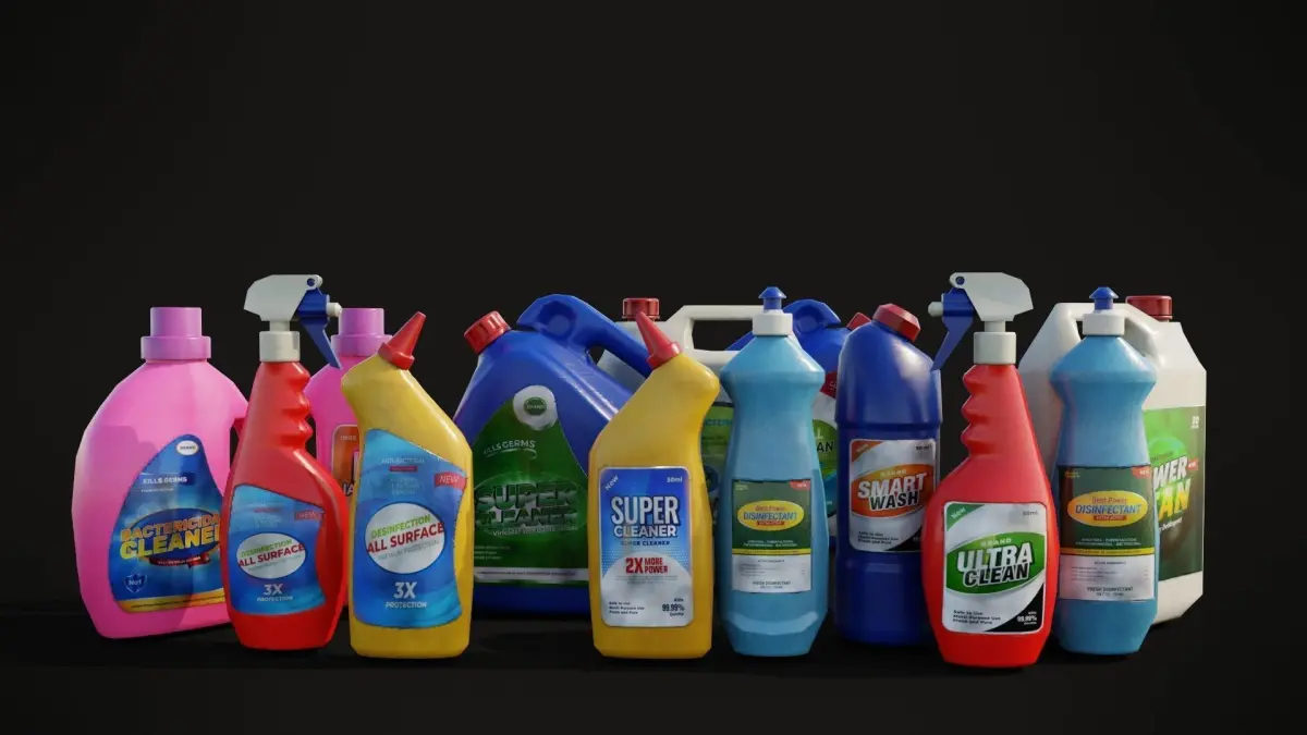 model includes bottles of cleanning chemicalsIdeal for video games and animation shots as a scene filler since its low poly just about 6k vertices and works well in realtime engines tested in evee and unity HDRP can also be used as a scene filler and background object for vfx shots and filmss clean quad topologyuv mapped with 4k textures