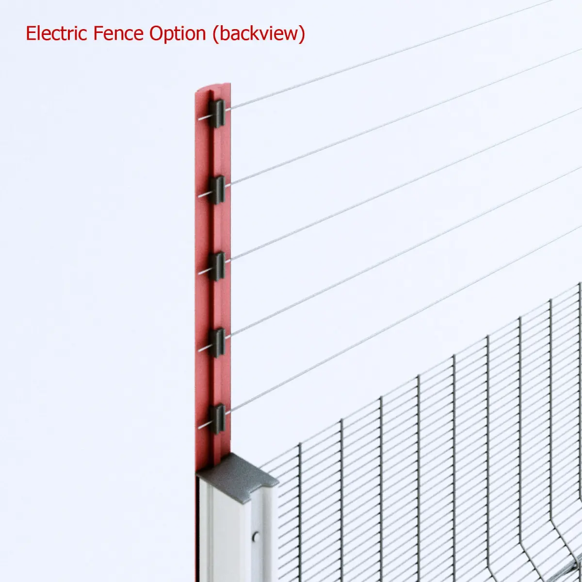 Fence posts constructed in 2 parts with decorative colour front panel and metal back post.Second post option has vertically extended front panel to accomodate electric fencing wires above fence.Five Cable eletric fence included.Optional extra - Castle Spike type top rail for fence.