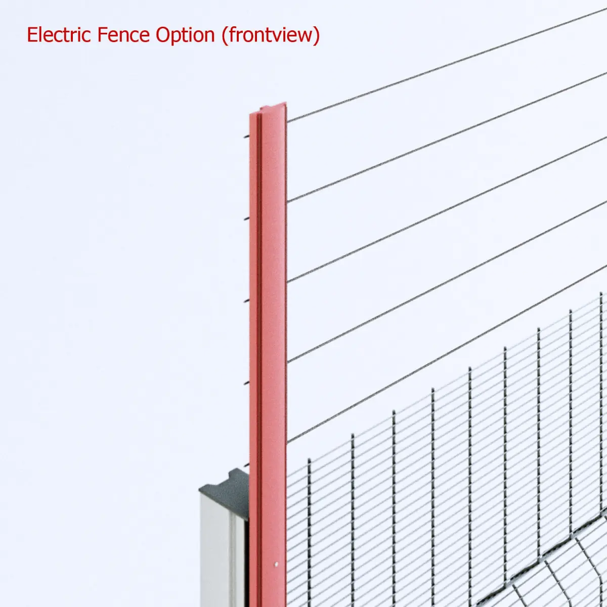 Powder coated metal mesh fence, with 2 post options and rolling vehicle gate.Four horisontal wire density variants included - verical openings size: