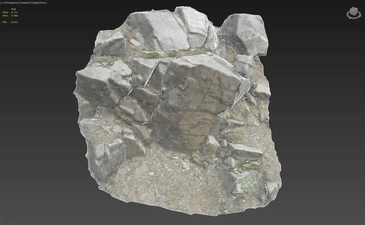 - 3d scanned cliff face H, Poly 31211, Vert 31466 OBJ, FBX, Blender, Max vray, Max fstorm
