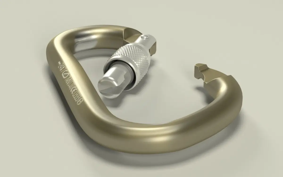 Rock climbing equipment - HMS type carabiner with tubular belay device.