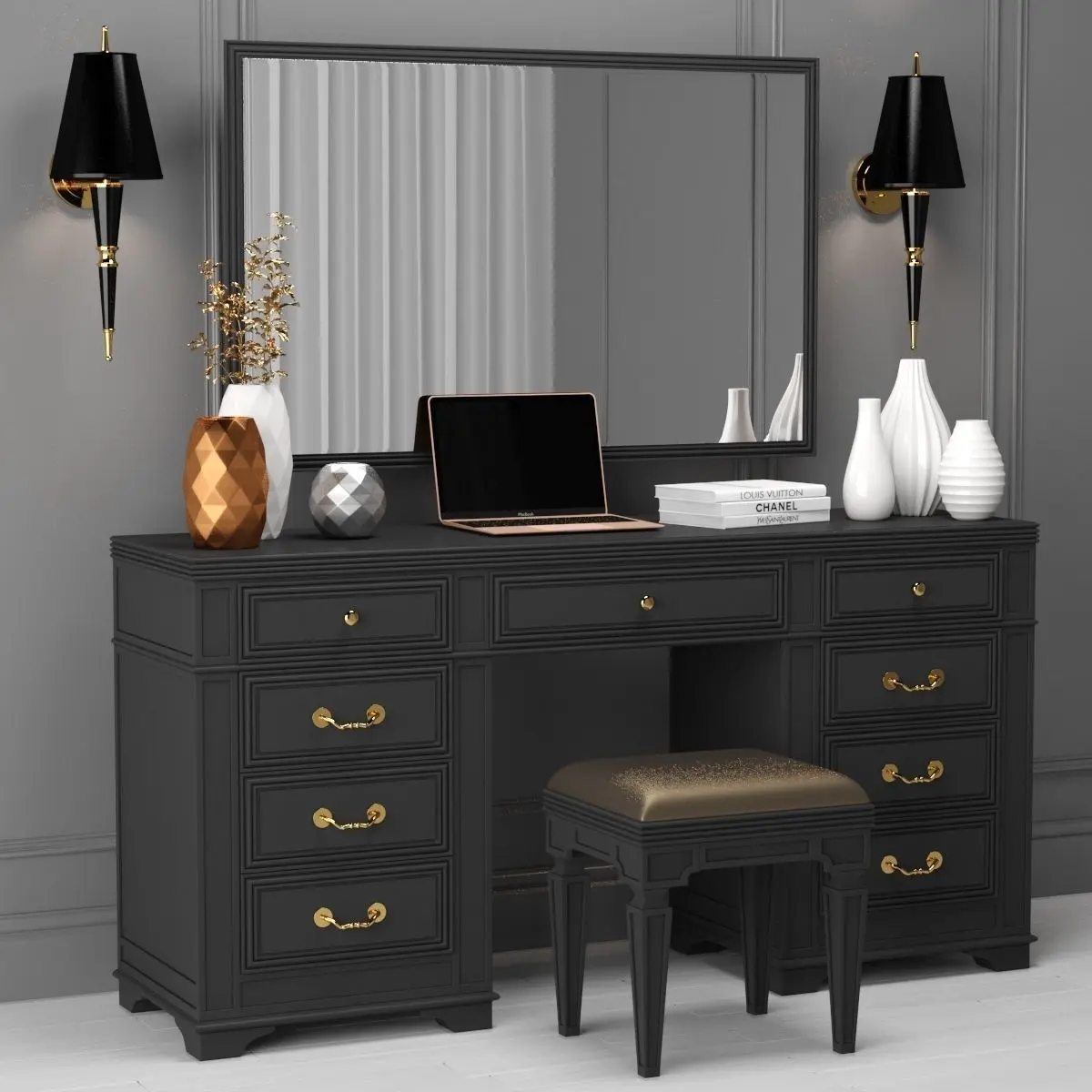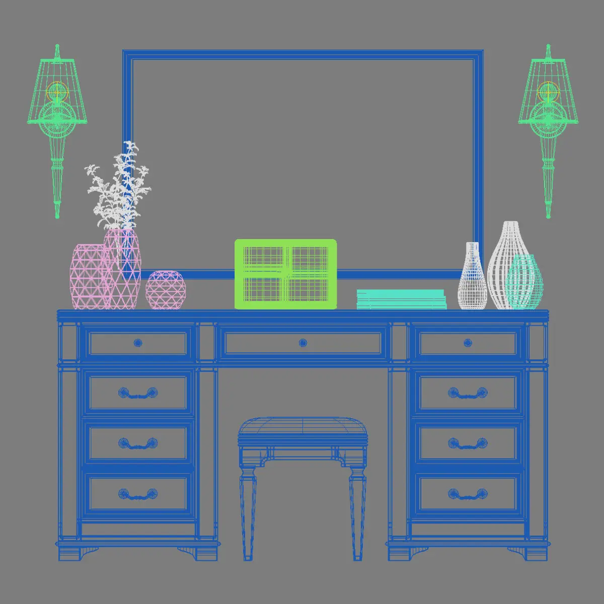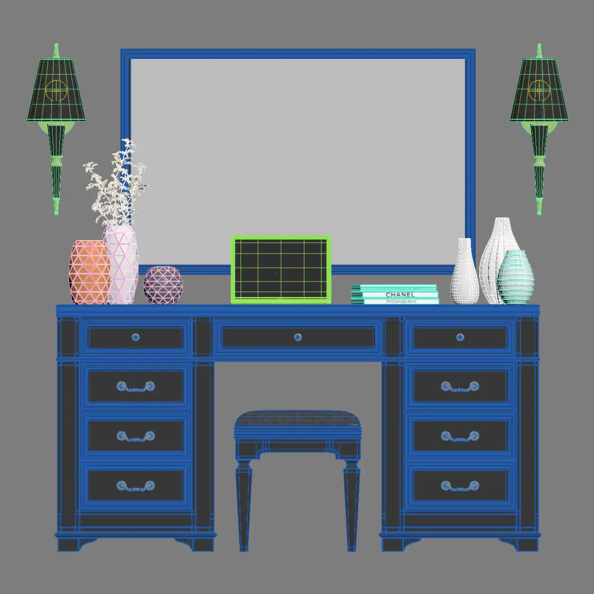 This is a realistic model of the Clio Dressing Table