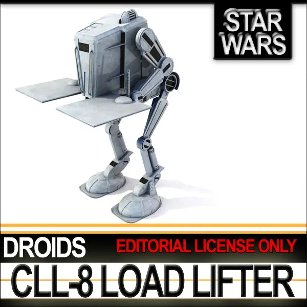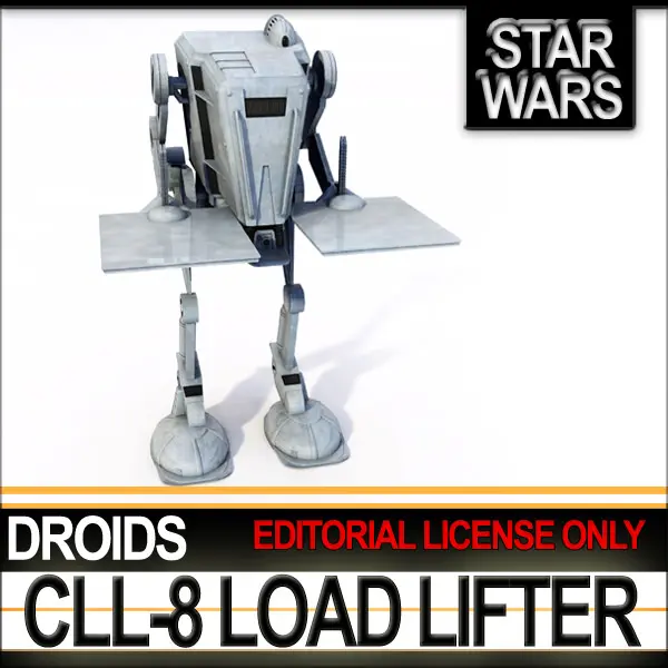 Star Wars: CLL-8 Binary Load Lifter Droid, built by Cybot Galactica. Complete with movable limbs and alternate parts and textures. C4D, 3DS, OBJ, VUE6 to 11.