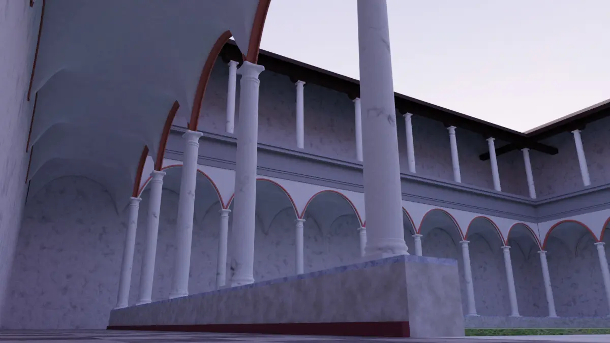 3D model of a medieval cloisterCarefully shaped with accurate proportions.Materials are partly textured and partly procedural. All objects are named and presented as separate parts; materials are easy to be modified, removed, or replaced.Textures included. Several exchange formats including .blend, .OBJ, .fbx, .DAE, .stl