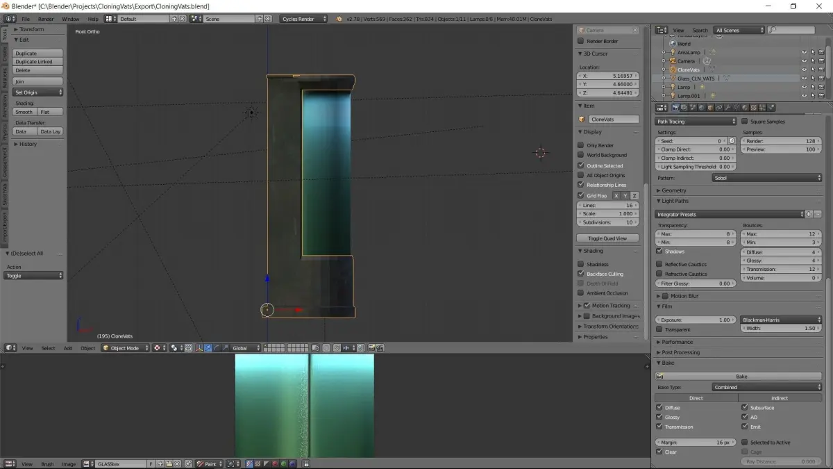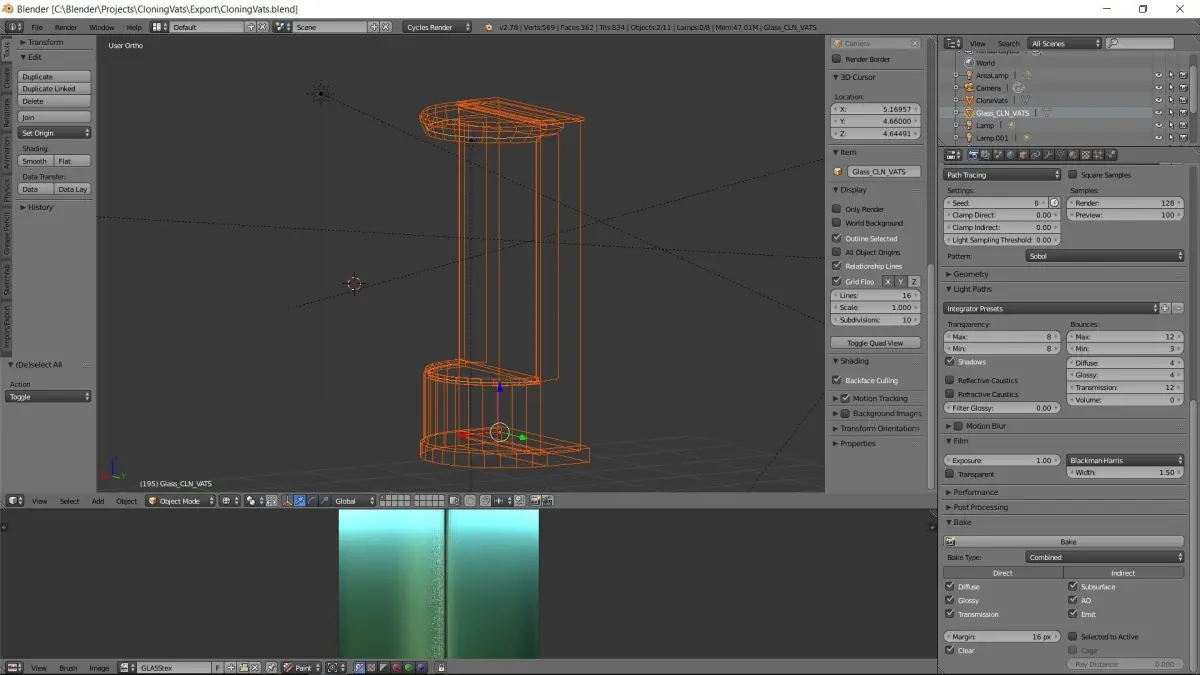 A low-poly cloning vat for sci-fi art or gamedevelopers. It comes with nice baked metal texture and glass shader, also with an inner light source to illuminate the tank.