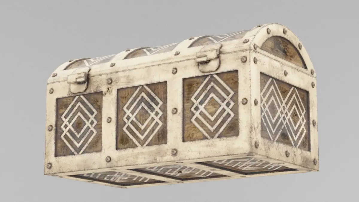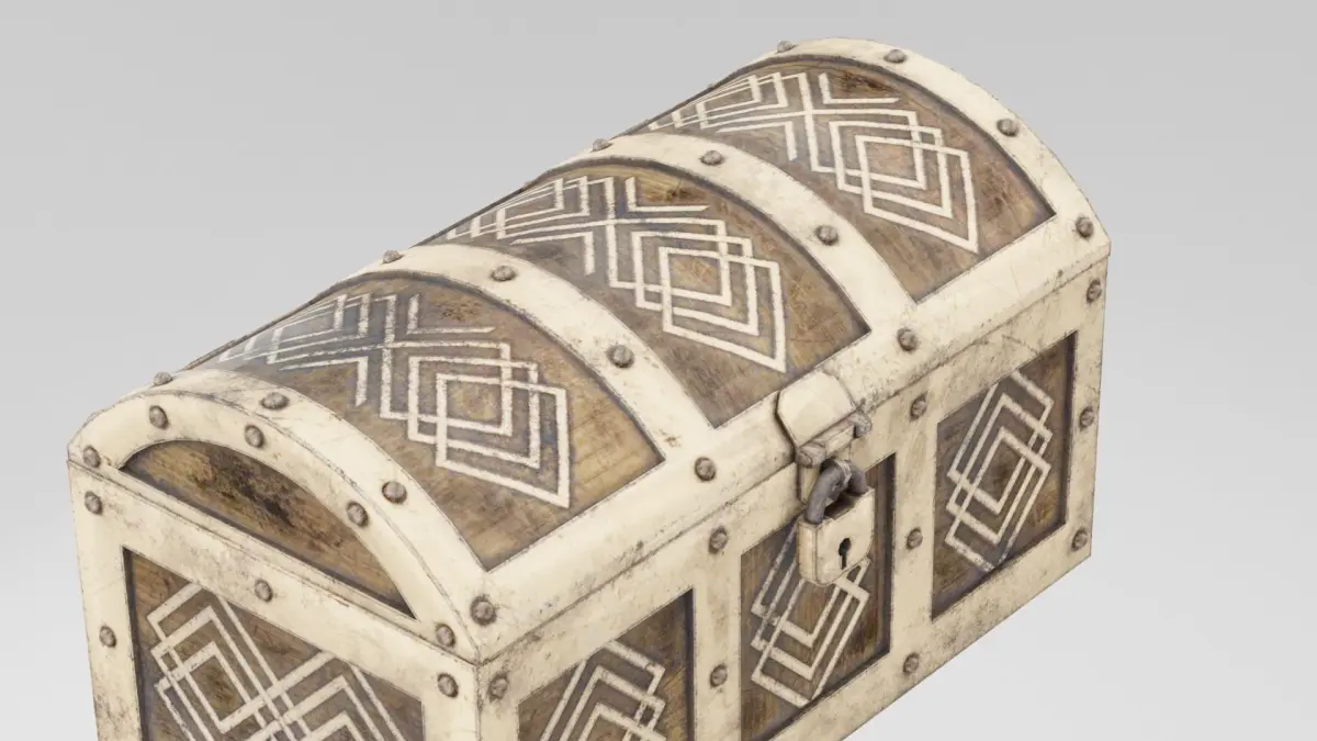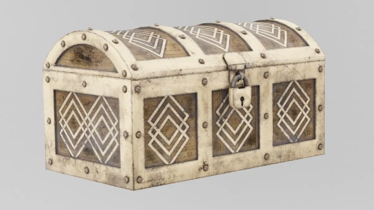 Closed Treasure Chest 3D Model A meticulously crafted Closed Treasure Chest with a rectangular, reinforced wooden body bound by thick, weathered metal bands. The chest’s lid is slightly domed and features intricate carvings, rivets, and a large, central latch with a secure, antique-style lock. Rendered in 4K textures, the wood grain is richly detailed with natural wear, and the metal elements display a patina that adds historical authenticity. Available in Blend, FBX, OBJ, and DUF formats, this model is ideal for treasure troves, pirate-themed scenes, or medieval settings.