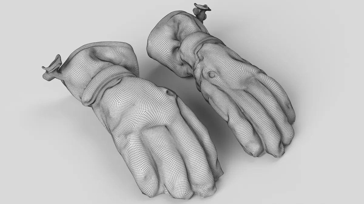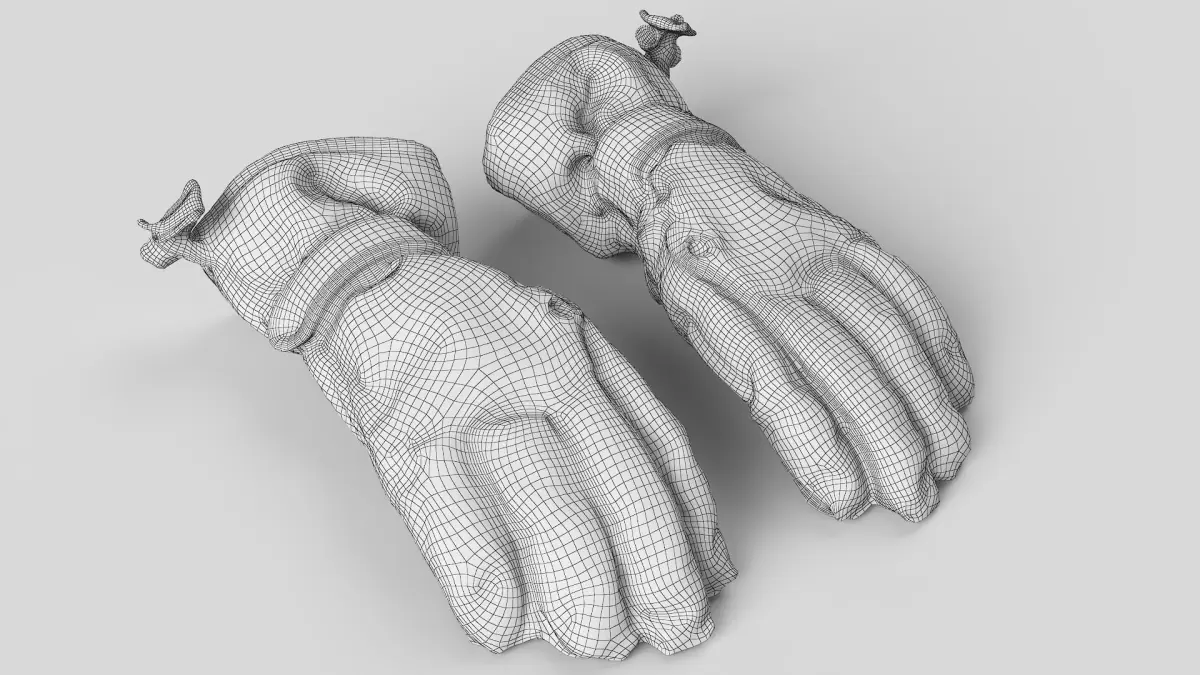 High detailed 3D model from cleaned retopology scan data of winter gloves.