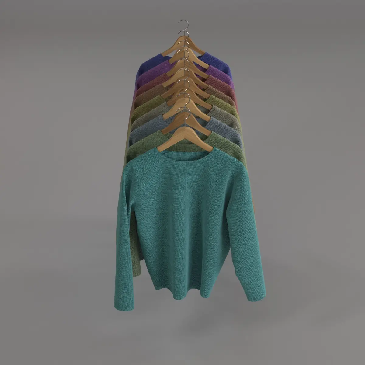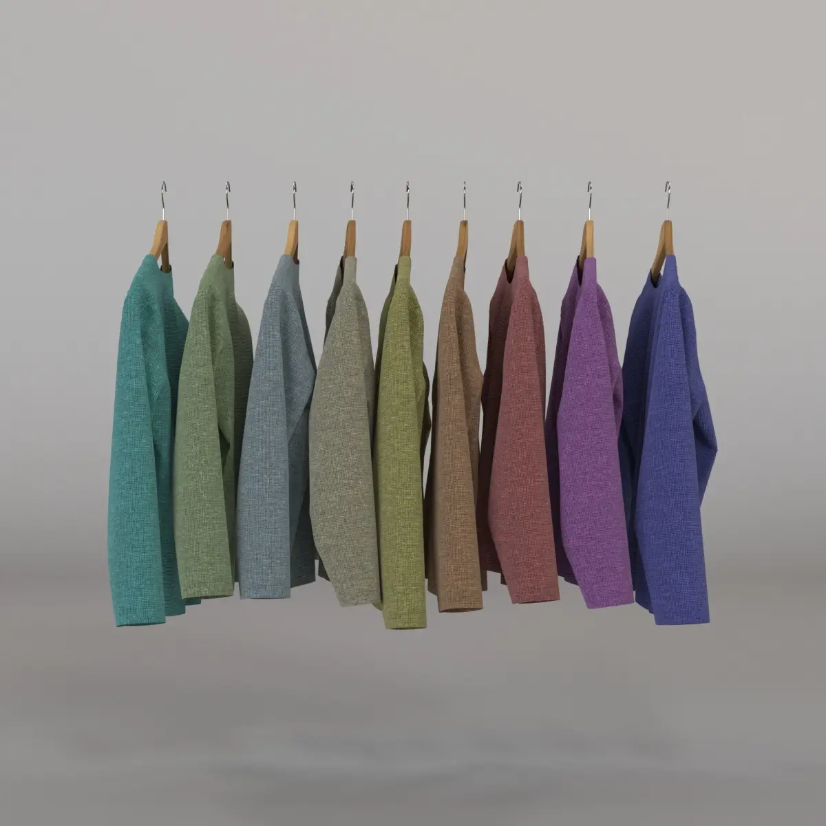 Realistic 3D-model of shirts on a rack display. 9 Shirts individually simulated, no intersections