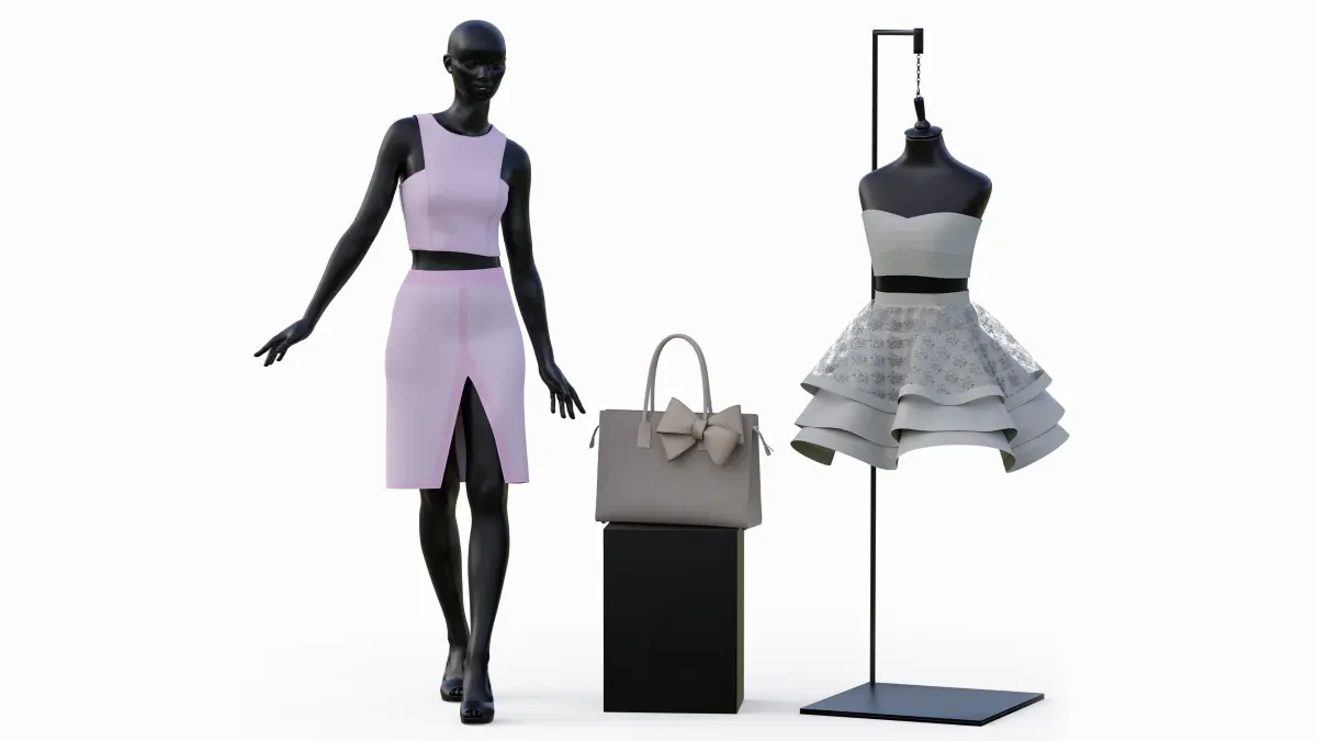 This high-quality 3D model of a Clothes Store Vitrin Set is ideal for fashion store visualizations, real-time applications, and interior design renders. The set includes a stylized mannequin, modern outfit, handbag, and hanging dress form – all crafted to showcase a fashionable retail environment.