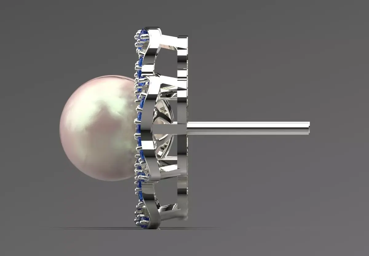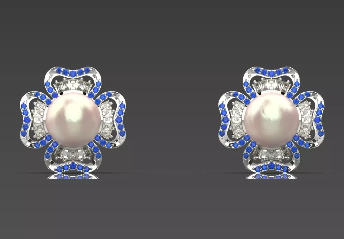 Pearl, Diamond and Sapphire Stud Earrings Model PE0050 - Classic and Intricate Design