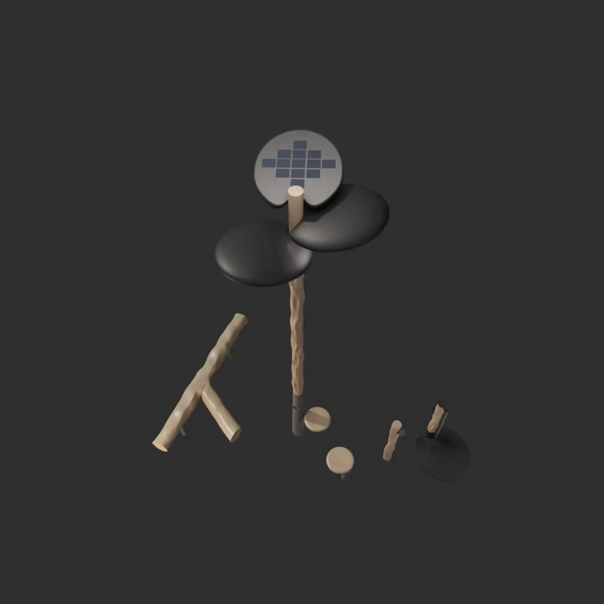Date : 2015Materials : Numerically carved wood, aluminum, solar panels, leds.