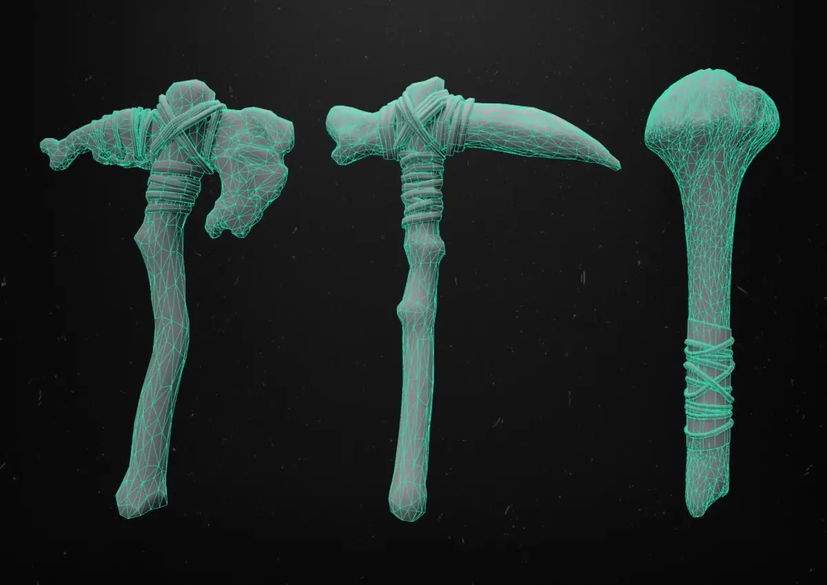 The 3D model of 3 pre-historical weapons, which are made of wooden and skeletal categories, are triangular polyps, and loopies are in different formats, with standard quality and standard tackles, I hope you like your own