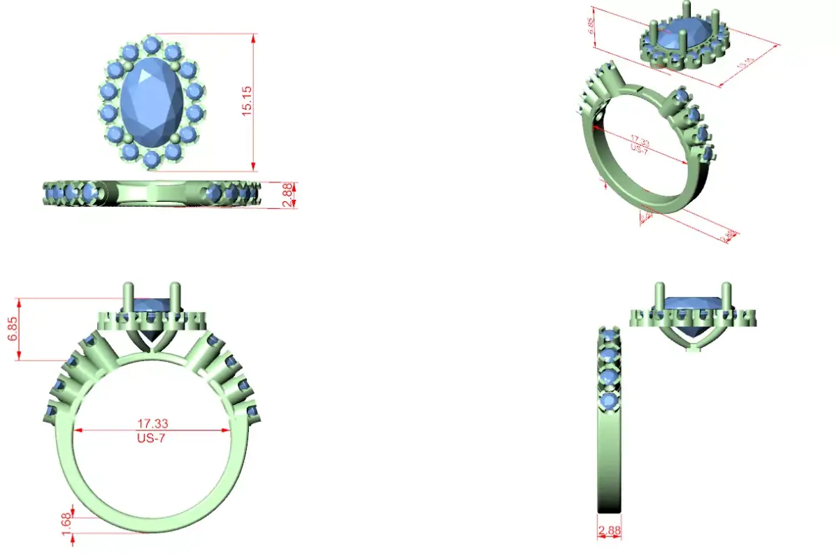 The model has been carefully structured for professional manufacturing. Clean geometry, accurate stone placement, and smooth surface transitions ensure excellent casting results, reliable stone setting, and high-quality polishing. The elevated head improves light performance while maintaining a strong and balanced structure for everyday wear.