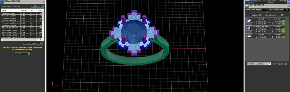 Cluster ring with Rounds and Baguettes 3D print model