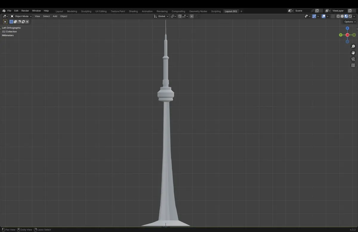 CN Tower. REady for 3D printing.Scale is set to a height of 6 inches approximately. There are two STL files, one labelled CN_Tower_1 and CN_Tower. If CN_Tower does not have proper scale, use the second one. Designed for use in making a 3D figure.