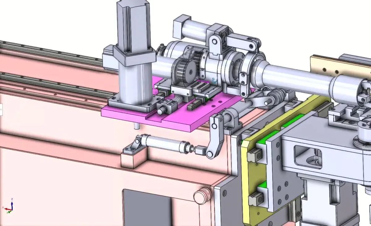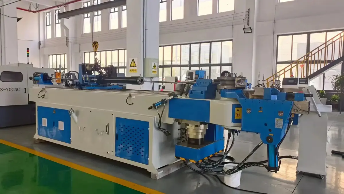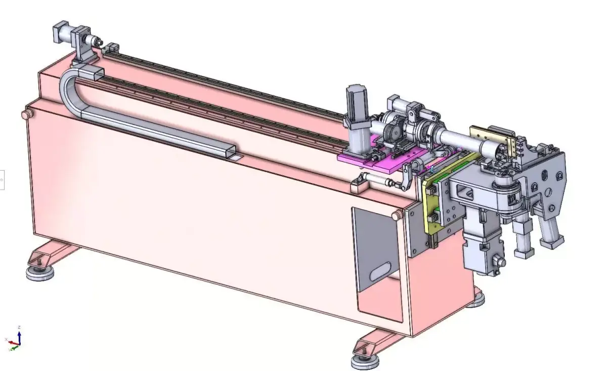 This high-precision 3D model showcases a CNC-controlled 5-axis tube bending machine, designed for complex tube manipulation and fabrication. The model features detailed components such as the servo-driven bending head, clamping systems, rotary actuators, and linear guides. Ideal for simulation, design validation, factory layout planning, and digital twin applications, this model is perfect for industries in automotive, aerospace, and industrial piping systems.
