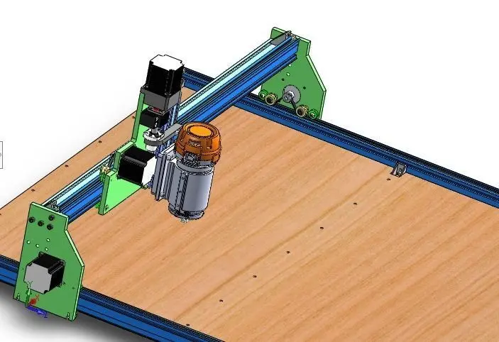 Work area X axis 1000 mm, Y axis 1000 mm , Z axis travel 80 mm. Stepper motors used Nema 23 Drive system Belt and pulley on x and y axis , Ball screw on z axisLinear guides used on x axis , y axis and z axis are V guide rails and v guide wheels.Controll software Mach3 windows .