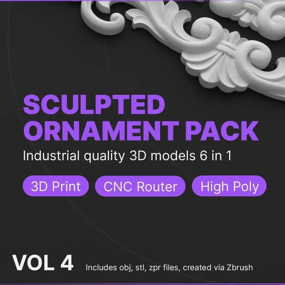 This pack contains 6 high-quality models created via Zbrush, ideal for CNC router stone engraving and 3d print services.