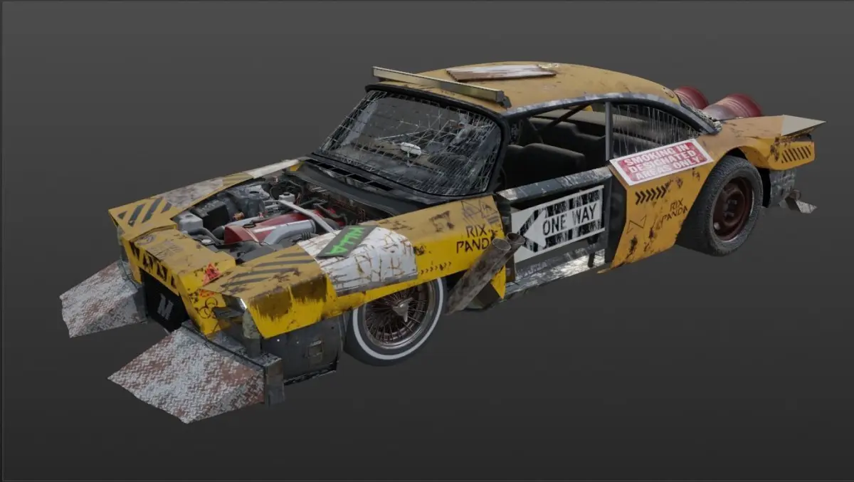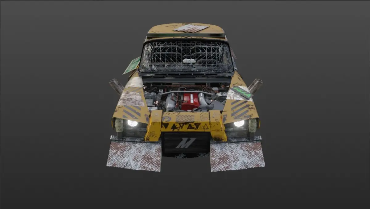 Car model based on mad max theme and post apocolypitic scene -high detailed and 2k textures -textures made in substance painter ,modelled in blender -great for game, animations ,prop -all individual objects and modelled in tris / quads-high detail textures ,and model -best viewed in blender-attached model extensions , fbx,obj,mtl,dae,blend-textures in seperate zip files (both for .dae and in general )-model suited for post apocolyptic environment or abandoned scene-high detailed engine bay with RB26 engine-car is based on enemy car in the game :-pursuit force : extreme justice -