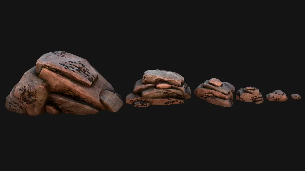 Game ready models.Stylized and detailed Coal Deposits Pack fully textured, sculpted and rendered with Physical based rendering (PBR) - Shown images have been rendered in Marmoset Toolbag .The models contains lods, detailed information on the images.The set contains 6 models of Coal Deposits .