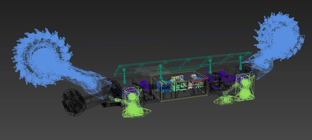 - The scene contain a lowpoly and a high poly Coal Mining Machine