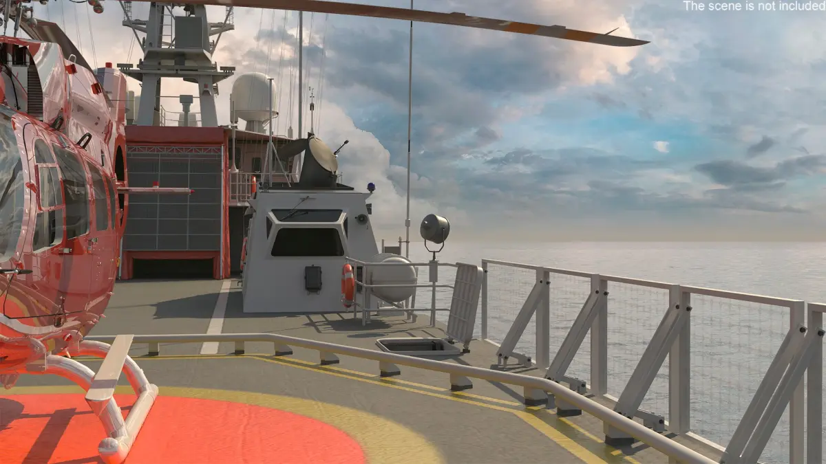 Coast Guard Ship with Helicopter Rigged for Cinema 4D is a 3d model of vessel that is equipped with a helicopter for search and rescue missions, maritime law enforcement, and surveillance operations.