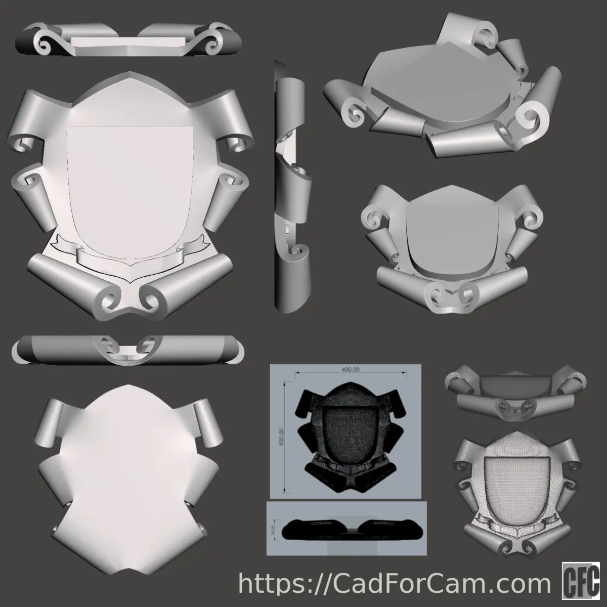 [EN] Coat of arms - scroll - 3d model for CNC Type: 3d model, sculpture, relief Posible uses: CNC ready, alpha for 3d sculpting aplications (zbrush, 3d coat) -Included obj and stl formats. 5 alphas greyscale images -Includes hight quality Alphas for 3d sculting aplication (zbrush, 3d coat, blender,....). -Solid mesh tested on rhinoceros 3d. -Ready for customization -Picture based design