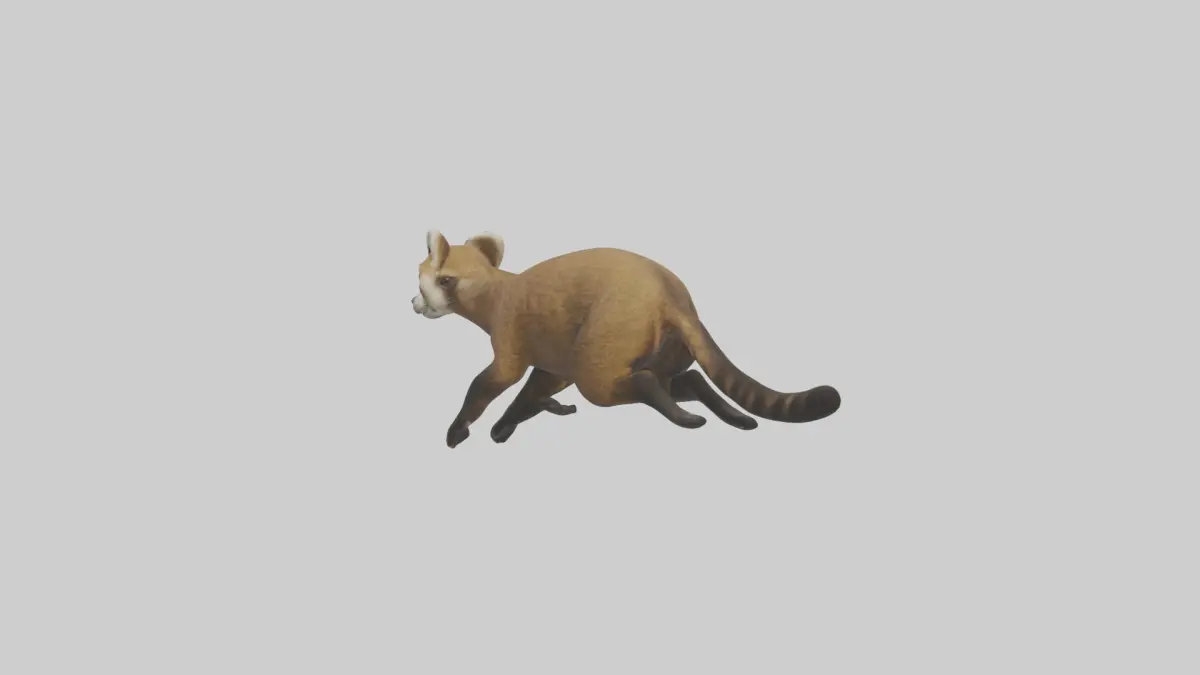 coati, koşan hayvan, vahşi yaşam, memeli, çevik, hızlı, 3D model, kuyruk, pençe, hareket, animasyon, oyun tasarımı, doğa, detaylı, dinamik.