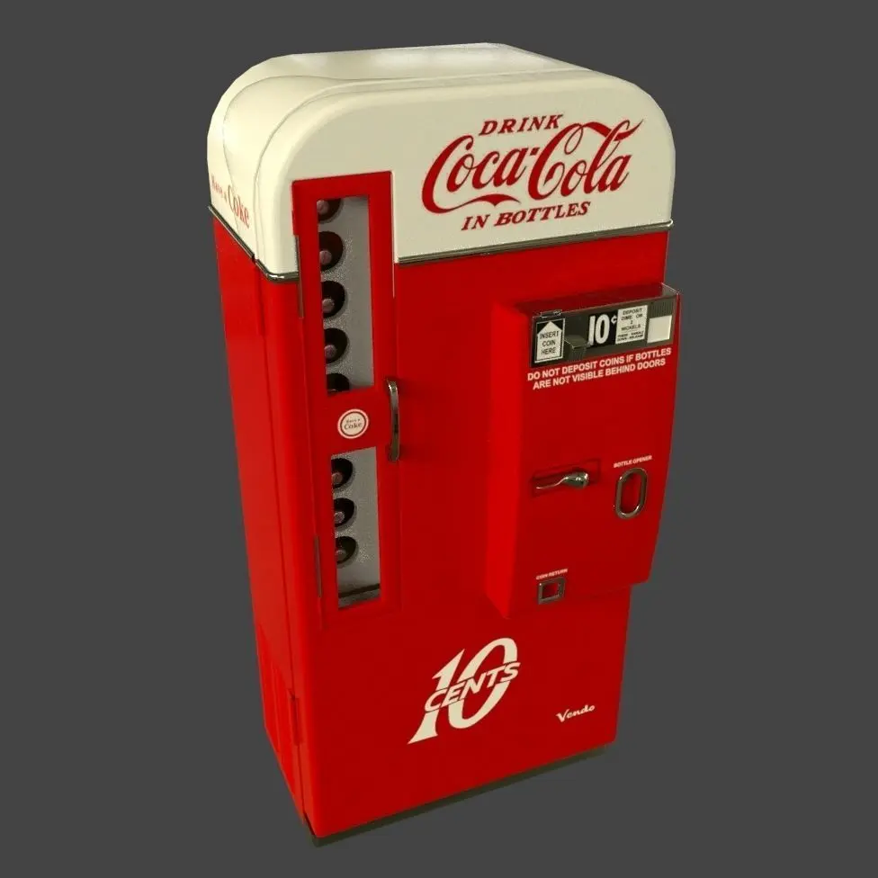Vendo 81 vending machine from the 50s lowpoly, high detail, fully UVW unwrapped, Pbr textured model.
