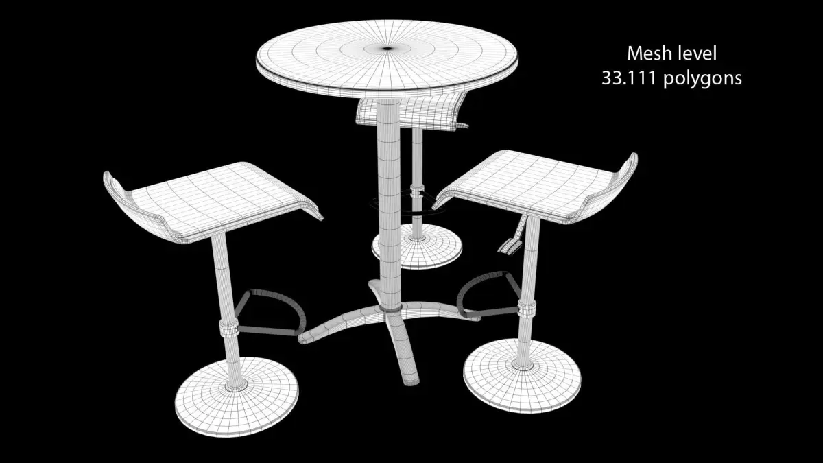 Hello, i want to show you this 3D model it is a table with 3 chairs where you can use this for shows, events, a bar, or anything you need.