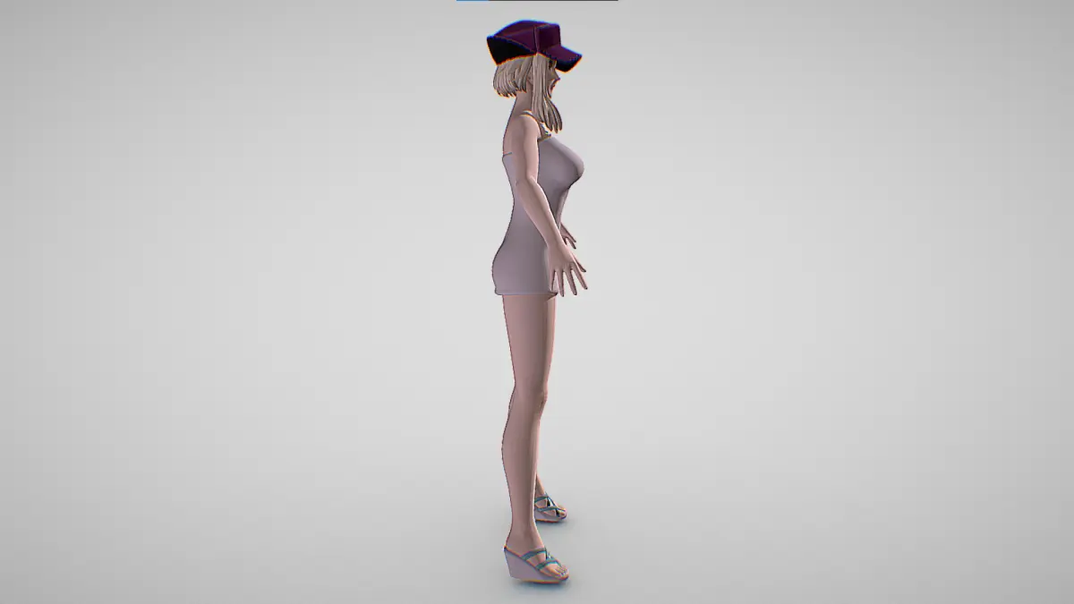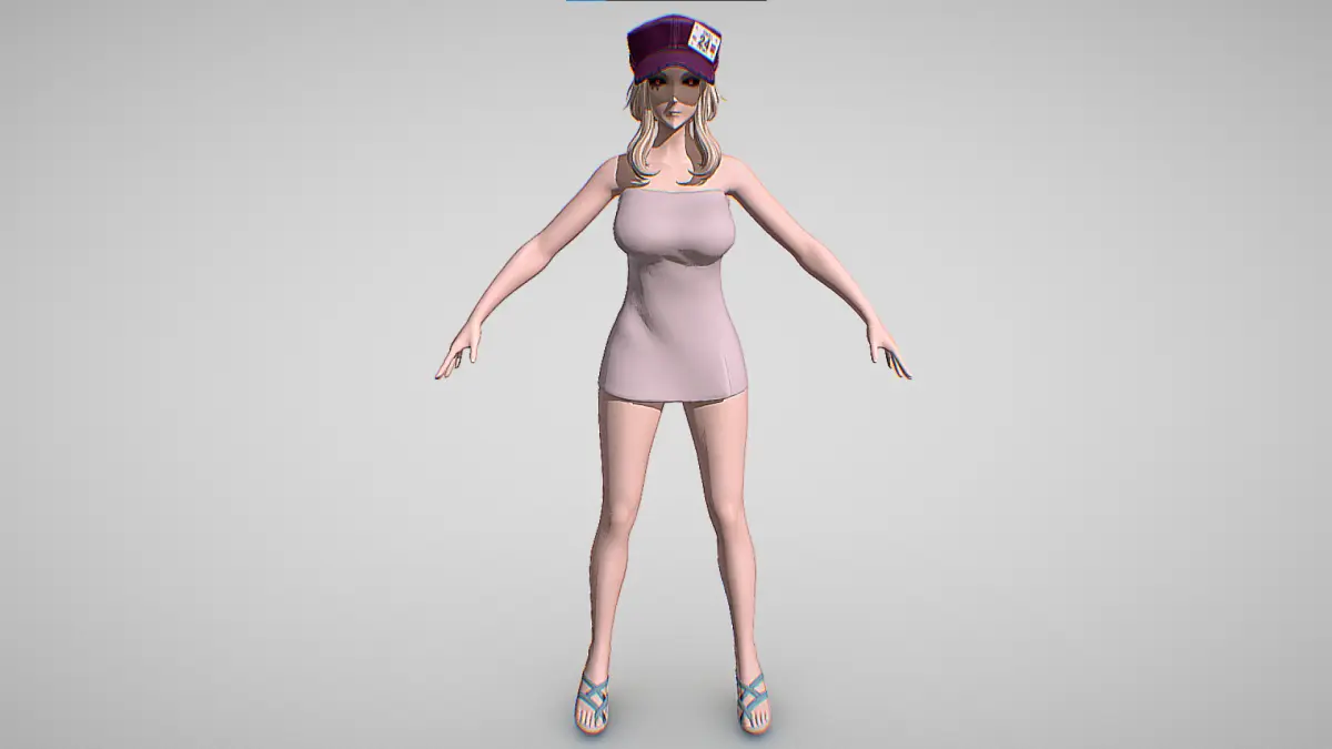 She wears a violet cap and what appears to be a sports bra, showing off her curvy yet slim build. A choker, fingerless gloves and a small satchel on her left arm as well as around her waist adorn her outfit. Coco is seen wearing tight black leather pants which show her light skin in a few places and black shoes.