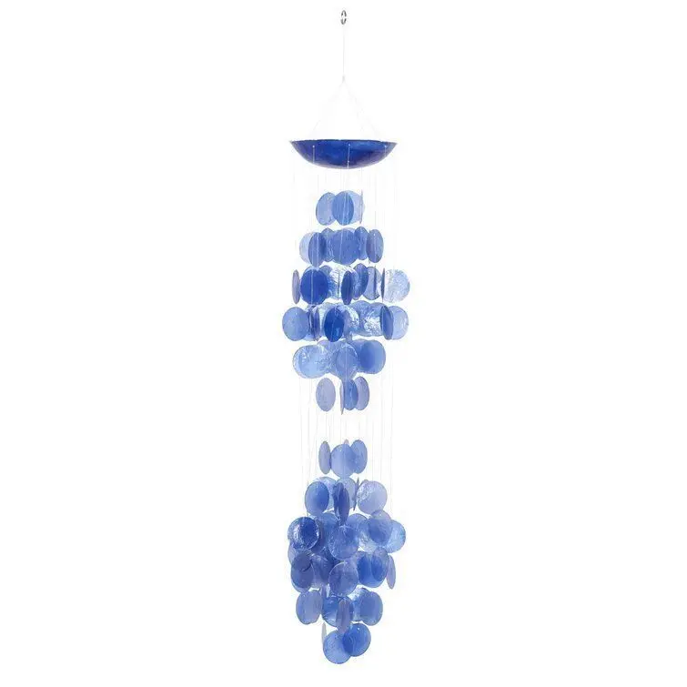 - Welcome a cool breeze to your front porch or simply accent an indoor ensemble with this wind chime. Its curved, stone top supports hanging capiz shells at different heights for a layered look and a solid hue that still lends a pop of color.