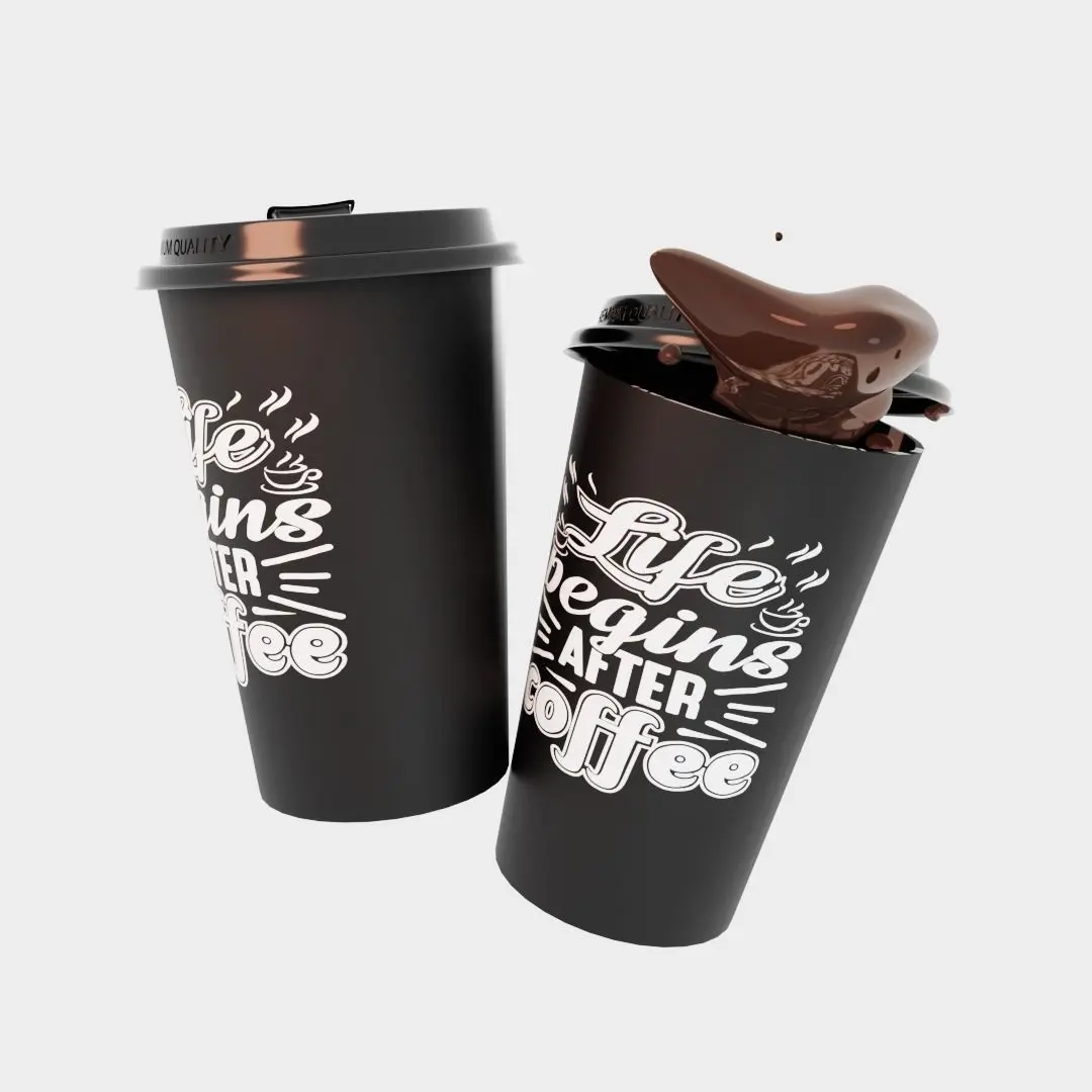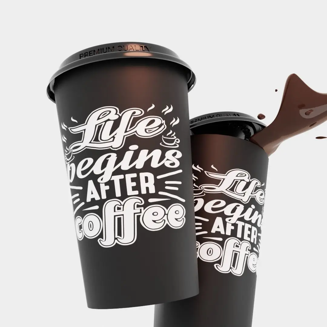 Two coffee cups with an unknown print, made for the test, don't beat the crooked hands.