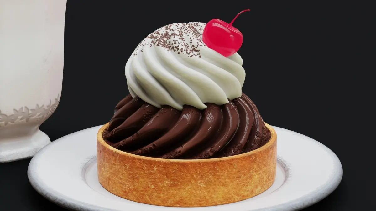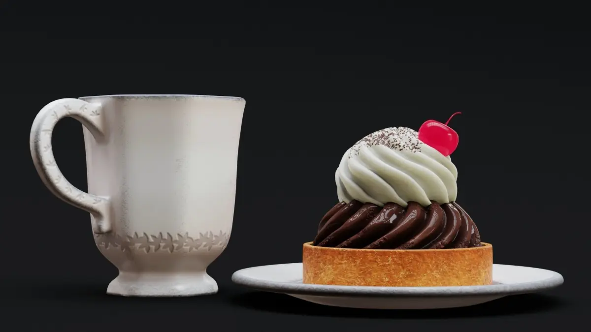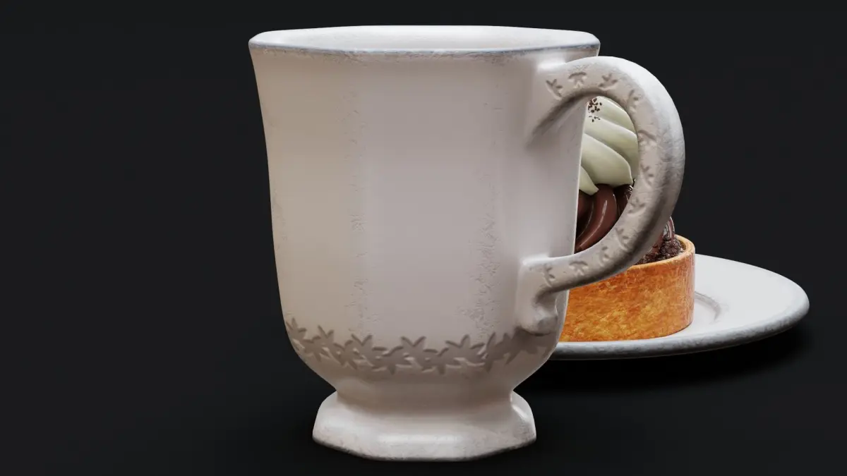 THIS MODEL CONTAINS:1 Rustic Cup with coffee1 Chocolate Pie1 Rustic Plate